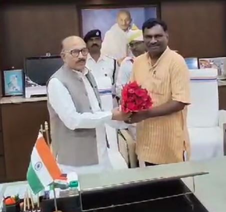 रांची : झारखंड के नव नियुक्त नेता प्रतिपक्ष अमर कुमार बाउरी ने मंगलवार को झारखंड विधानसभा के अध्यक्ष रविन्द्र नाथ महतो से शिष्टाचार मुलाकात झारखंड विधान सभा मे की। इस दौरान विधानसभा अध्यक्ष एवं नेता प्रतिपक्ष में एक दूसरे को पुष्पगुच्छ देखकर बधाई दी।