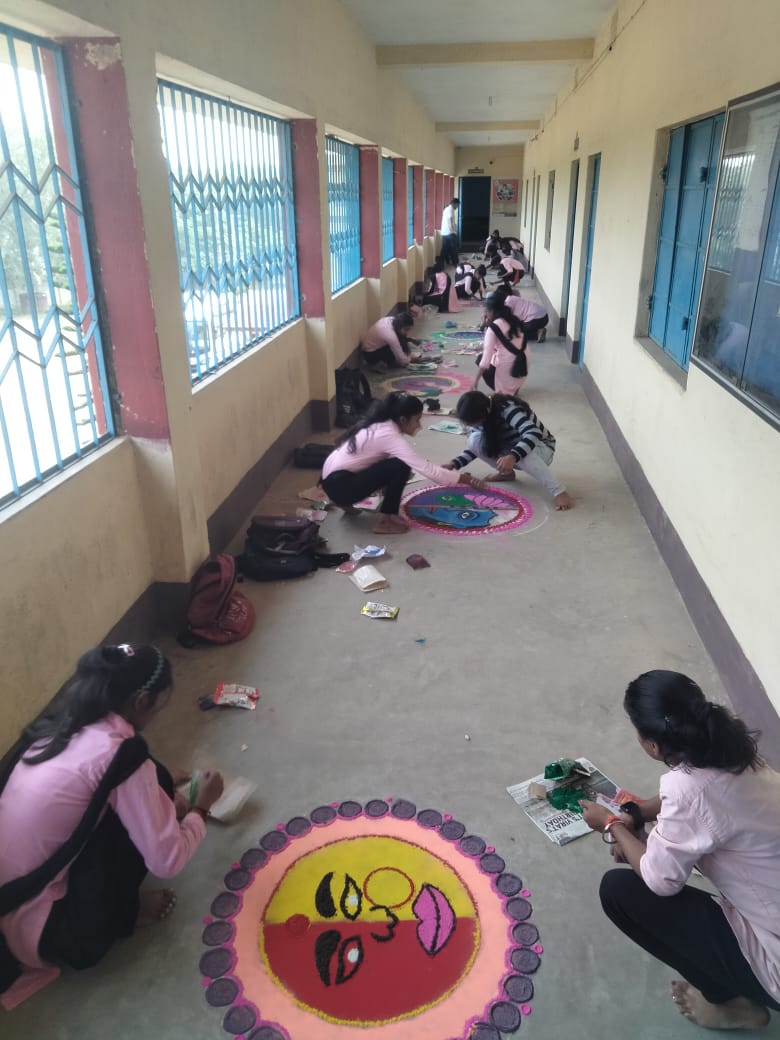 गिरीडीह : मंगलवार को सरिया कॉलेज राजनीति विज्ञान विभाग की ओर से रंगोली प्रतियोगिता का आयोजन किया गया। दो-दो छात्राओं का ग्रुप बनाकर रंगोली प्रतियोगिता आयोजित की गई। जिसमें विद्यार्थियों ने धार्मिक उत्सव पर आधारित रंगोली को बनाया।