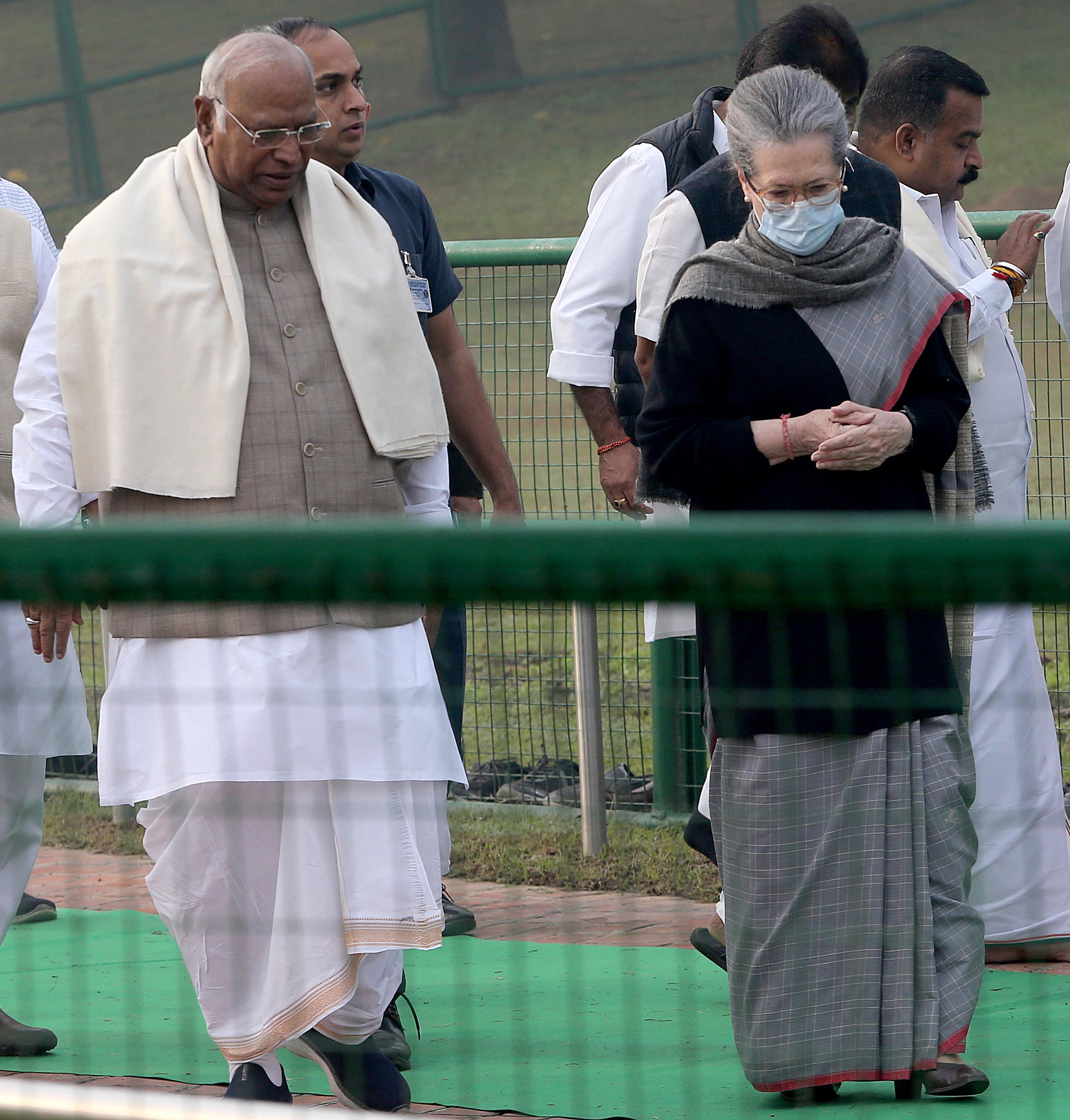 पंडित जवाहरलाल नेहरू की जयंती पर राष्ट्रीय कांग्रेस अध्यक्ष मल्लिकार्जुन खड़गे और सोनिया गांधी ने शांतिवन पहुंचकर श्रद्धांजलि दी