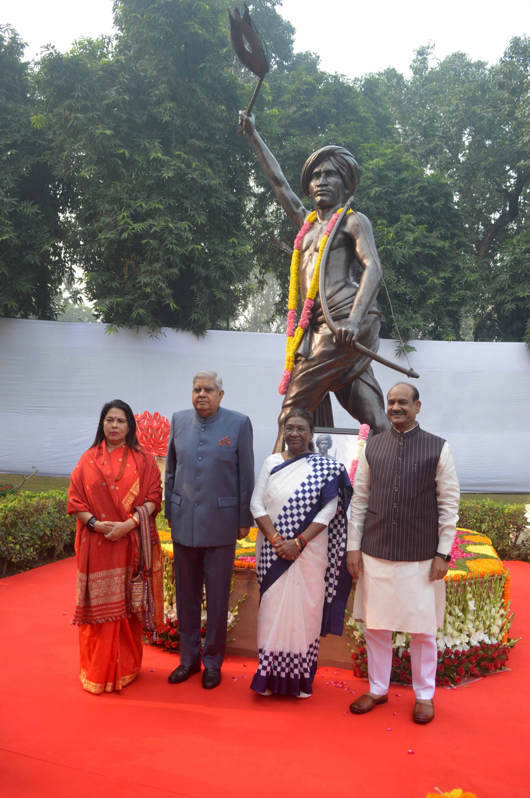 बिरसा मुंडा की जयंती के अवसर पर राष्ट्रपति द्रौपदी मुर्मू,उपराष्ट्रपति जगदीप धनखड़ और लोक सभा अध्यक्ष ओम बिरला ने संसद भवन परिसर में उन्हें पुष्पांजलि अर्पित की
