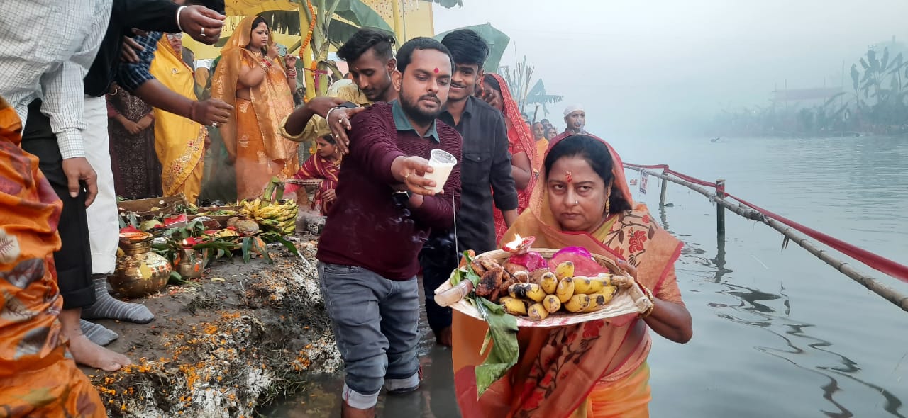 शहर में रोशनी की व्यवस्था की गई।जिससे अहले सुबह छठव्रतियों को घाट पर जाने में किसी प्रकार की परेशानी न हो।घाट पर जिला प्रशासन की ओर से छठव्रतियों के वस्त्र बदलने के लिए चेंजिंग रूम,भीड़ पर नियंत्रण के लिए वॉच टावर का निर्माण के साथ घाटों पर गहरे पानी को लेकर बांस की बेरेकेडिंग की गई।इसके अलावे किसी तरह की अनहोनी घटना से निबटने के लिए घाटों पर एसडीआरएफ के जवानों के अलावे गोताखोर की तैनाती रही। प्रकृति को समर्पित इस महापर्व में छठव्रतियों ने पानी में खड़े होकर भगवान भास्कर की अराधना की और रविवार को डूबते हुए सूर्य को अर्घ्य देने के बाद सोमवार को उगते हुए सूर्य को अर्घ्य दिया। छ्ठव्रती कच्चे बांस के बने सूप में नारियल, डाब नींबू,फल- फूल सहित अन्य प्रकृति से प्रदत समानों के साथ डुबकी लगाते हुए सुख शांति और समृद्धि को छठी मैया से कामना की।वहीं विभिन्न घाटों पर पूजा समिति की ओर से स्थापित भगवान भास्कर की प्रतिमा के दर्शन के लिए भक्तों की भीड़ उमड़ी रही।