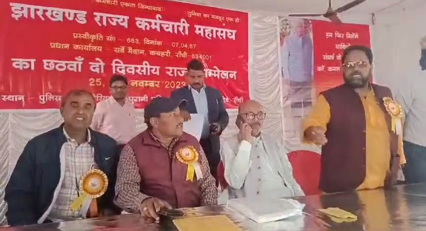 रांची : राजधानी रांची के पुलिस मेंस एसोसिएशन के सभागार में झारखंड राज्य कर्मचारी महासंघ का दो दिवसीय छठा राज्य सम्मेलन का शुभारंभ हुआ. जिनके खुले सत्र का उद्घाटन विधानसभा अध्यक्ष रविंद्र नाथ महतो के द्वारा किया गया. इस सम्मेलन में राज्य के कर्मचारी महासंघ से जुड़े सभी पदाधिकारी उपस्थित रहे.