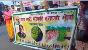 माय माटी संस्कृति बचाओ मोर्चा के द्वारा पुतला दहन एवं विरोध प्रदर्शन