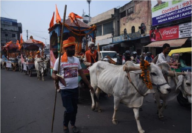लखनऊ से अयोध्या के लिए रवाना होने से पूर्व स्थानीय नागरिकों ने बैलगाड़ी खींच रहे बैलों की आरती उतारी। सभी बैलों का तिलक करने के बाद अयोध्या के लिए बैलगाड़ी रवाना हुई। संदीपनी रामजी महाराज ने हिन्दुस्थान समाचार को बताया कि वर्षों की तपस्या से संचित 108 कलशों में भरे देशी गाय के 600 किलो घी से श्रीरामजन्मभूमि मंदिर में अखंड ज्योति जलेगी, हवन एवं प्रथम आरती भी इसी घी से होगी। यह घी गौशाला में ही बनाया गया है। करीब दो दशक पहले गोशाला में संकल्प लिया गया था कि अयोध्या में जब भी राम मंदिर बनेगा तो यहां से घी भेजा जाएगा। अब यह संकल्प पूर्ण हो रहा है।