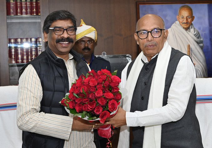 Ranchi : झारखंड विधानसभा का शीतकालीन सत्र शुरू होने से पहले मुख्यमंत्री हेमंत सोरेन ने स्पीकर रविंद्र नाथ महतो से मुलाकात की. सीएम ने विधानसभा स्थित स्पीकर कक्ष में विधानसभा अध्यक्ष से मिले और पुष्पगुच्छ भेंट कर उनका अभिवादन किया.