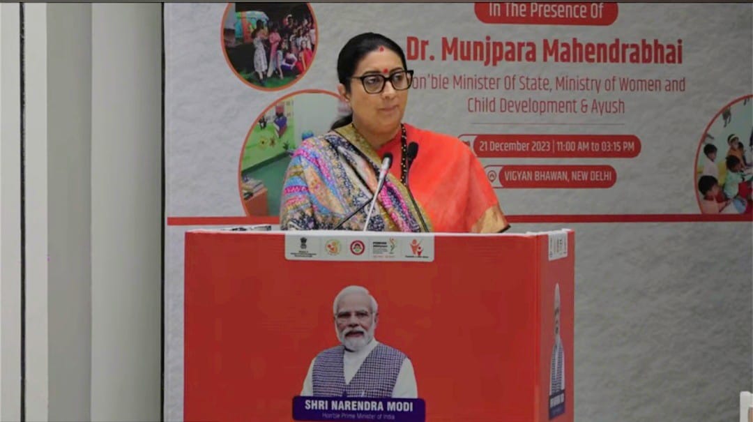 विज्ञान भवन में आयोजित कार्यक्रम में महिला एवं बाल विकासमंत्री स्मृति ईरानी ने कहा कि सरकार की पहली प्राथमिकता उस महिला तक पहुंचना है जो अपना घर छोड़कर दूसरे घर में काम करके अपनी आजीविका कमाती है, वह महिला जो खेतिहर मजदूर के रूप में काम करती है, महिला जो श्रमिक के रूप में काम करती है और आर्थिक गतिविधियों में भाग लेने का अवसर प्रदान करती है, ताकि वह अपनी आजीविका के साथ-साथ अपने बच्चों को एक सुरक्षित वातावरण प्रदान करने में सक्षम हो सके।