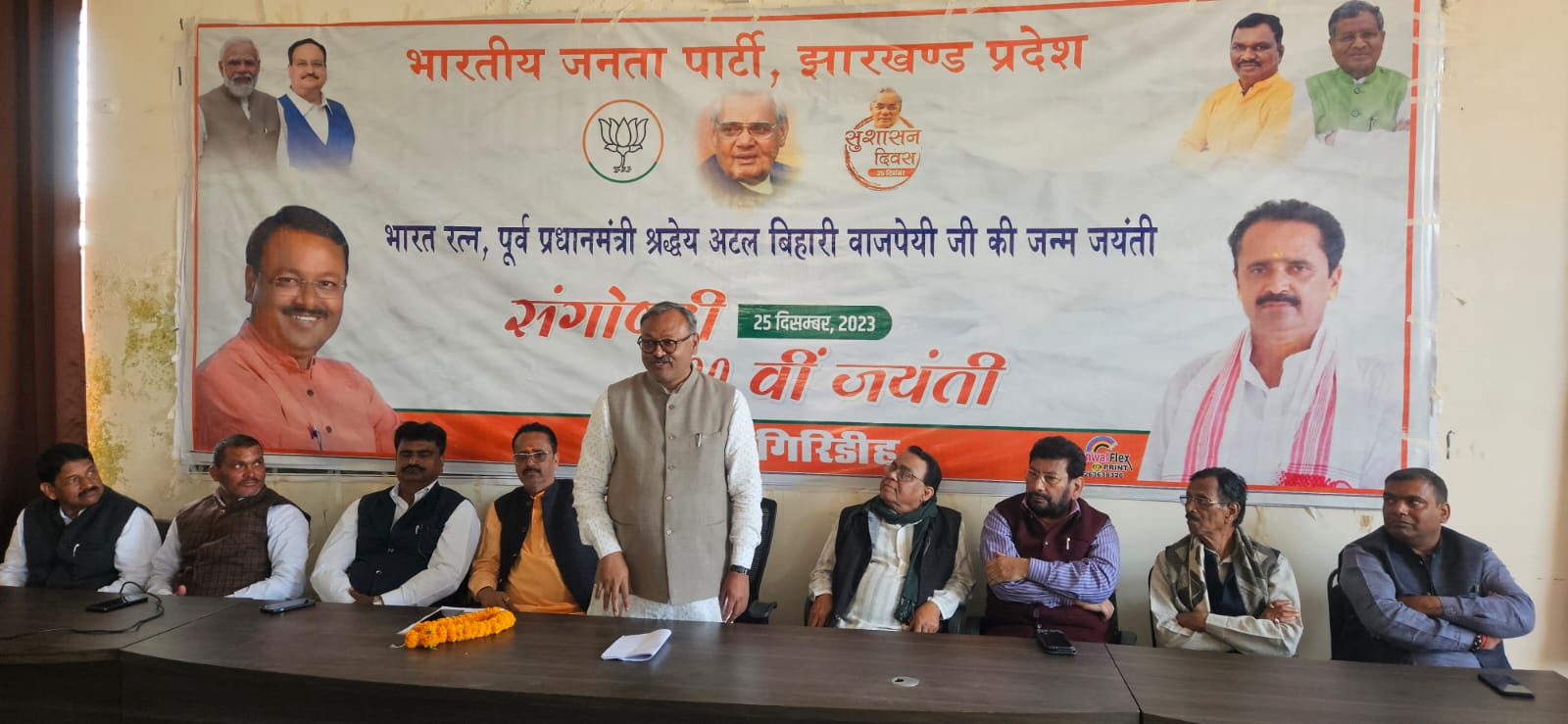 गिरिडीह : हरिचक स्थित भारतीय जनता पार्टी के जिला कार्यालय में सोमवार को पूर्व प्रधानमंत्री भारत रत्न The birth anniversary of former Prime Minister Bharat Ratna Atal Bihari Vajpayee was celebrated at the Bharatiya Janata Party office in Harichak. की जयंती मनाई गई। इस दौरान भाजपाइयों ने पूर्व प्रधानमंत्री के चित्र पर श्रद्धा सुमन अर्पित करते हुए नमन किया। इस कार्यक्रम में अतिथि के तौर पर बोकारो विधायक सह मुख्य संचेतक विरंची नारायण मुख्य रूप से मौजूद रहे। जयंती समारोह के दौरान भाजपाइयों ने पूर्व प्रधानमंत्री अटल बिहारी वाजपेई के जीवन पर प्रकाश डालते हुए उन्हें एक आदर्शवादी राजनेता, कवि, पत्रकार, लेखक और भारत माता के सच्चे सबूत बताया। बताया गया की अटल जी का जीवन संघर्षों से भरा रहा, जिसे उन्होंने अपने कविताओं और विचारों में बहुत ही संजीदगी के साथ उतारा। विरंची नारायण ने कहा कि अटल बिहारी वाजपेई स्वाधीनता सेनानी और राष्ट्र नेता थे ऐसे लोग विरले होते हैं। उन्होंने अपने कार्यकाल में कई ऐसे फैसले लिए जिसका लाभ आज लोगों को मिल रहा है। अन्य भाजपाइयों ने कहा की अटल जी ने निःस्वार्थ भाव से देश व समाज की सेवा की और भाजपा की स्थापना के माध्यम से देश में राष्ट्रवादी राजनीति को नई दिशा दी। उनके विराट योगदान को देश हमेशा याद रखेगा।