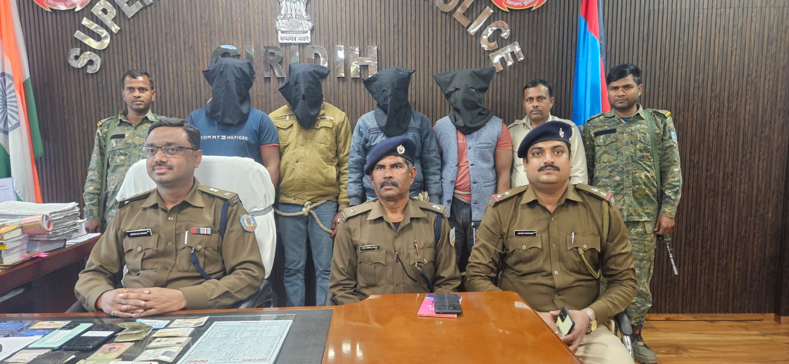 गिरिडीह के अहिल्यापुर थाना क्षेत्र के कोरियाटांड़ में बीते 16 नवंबर को मो. ताहिर अंसारी नामक युवक के साथ हुए लूटपाट मामले में गिरिडीह पुलिस ने चार अपराधियों को गिरफ्तार कर लिया है। गिरफ्तार अपराधियों में नितेश कुमार सिंह, समसुद्दीन अंसारी, सुजीत कुमार सिंह और मो. सबा शामिल है। इन चारों अपराधियों के पास से पुलिस ने लूट की घटना में प्रयुक्त की गई अपाची मोटरसाइकिल, दो मोबाइल फोन, दो यूनियन बैंक का डेबिट कार्ड, दो प्रीपेड कार्ड, एक बैंक ऑफ इंडिया का डेबिट कार्ड और प्रीपेड कार्ड, पैन कार्ड, वोटर कार्ड भी बरामद किया है।