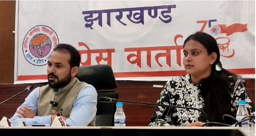 रांची : राजधानी रांची के प्रेस क्लब सभागार में अखिल भारतीय विद्यार्थी परिषद झारखंड के द्वारा आगामी कार्यक्रमों एवं झारखंड में व्याप्त विभिन्न शैक्षिक समस्याओं के परिदृश्य में एक प्रेस वार्ता का आयोजन किया गया. इस प्रेस वार्ता को अखिल भारतीय विद्यार्थी परिषद के राष्ट्रीय महामंत्री ने संबोधित किया.