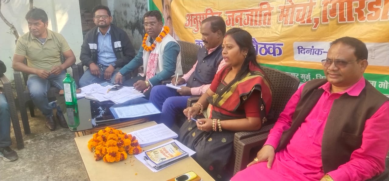 जिसमे रांची में होने वाले जनजाति सम्मेलन को सफल बनाने के साथ गांव चोपाल में होने वाले अनुसूचित जनजाति मोर्चा के बैठक को सफल बनाने शामिल था। इस बैठक में देवी श्री सोरेन, शांति मुर्मू, बजल हेंब्रम, अनिल मुर्मू, कुलदीप टुडू, परमेश्वर मरांडी, पंकज सोरेन समेत कई नेता और कार्यकर्ता शामिल हुए।