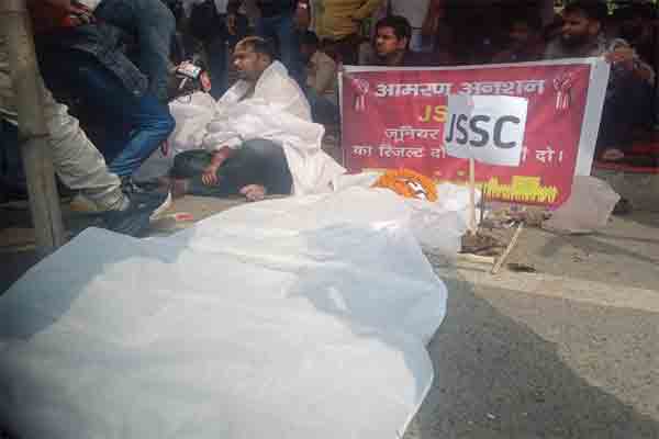 RANCHI : विगत दिनों से राजधानी के राजभवन के समीप झारखंड कर्मचारी चयन आयोग के द्वारा जूनियर इंजीनियर परीक्षा का रिजल्ट अब तक जारी नहीं किए जाने को लेकर नाराज अभ्यर्थी धरना सह आमरण अनशन पर बैठे हुए हैं. आंतरिक रूप से नाराज और आक्रोशित छात्र सभी विषयों को लेकर आज झारखंड कर्मचारी चयन आयोग का शव यात्रा बाल मुड़वा कर एवं श्राध कर्म किया इसी कार्यक्रम के दौरान छात्र की तबीयत खराब हो जाने के कारण उसे एंबुलेंस के द्वारा अस्पताल में एडमिट किया गया.