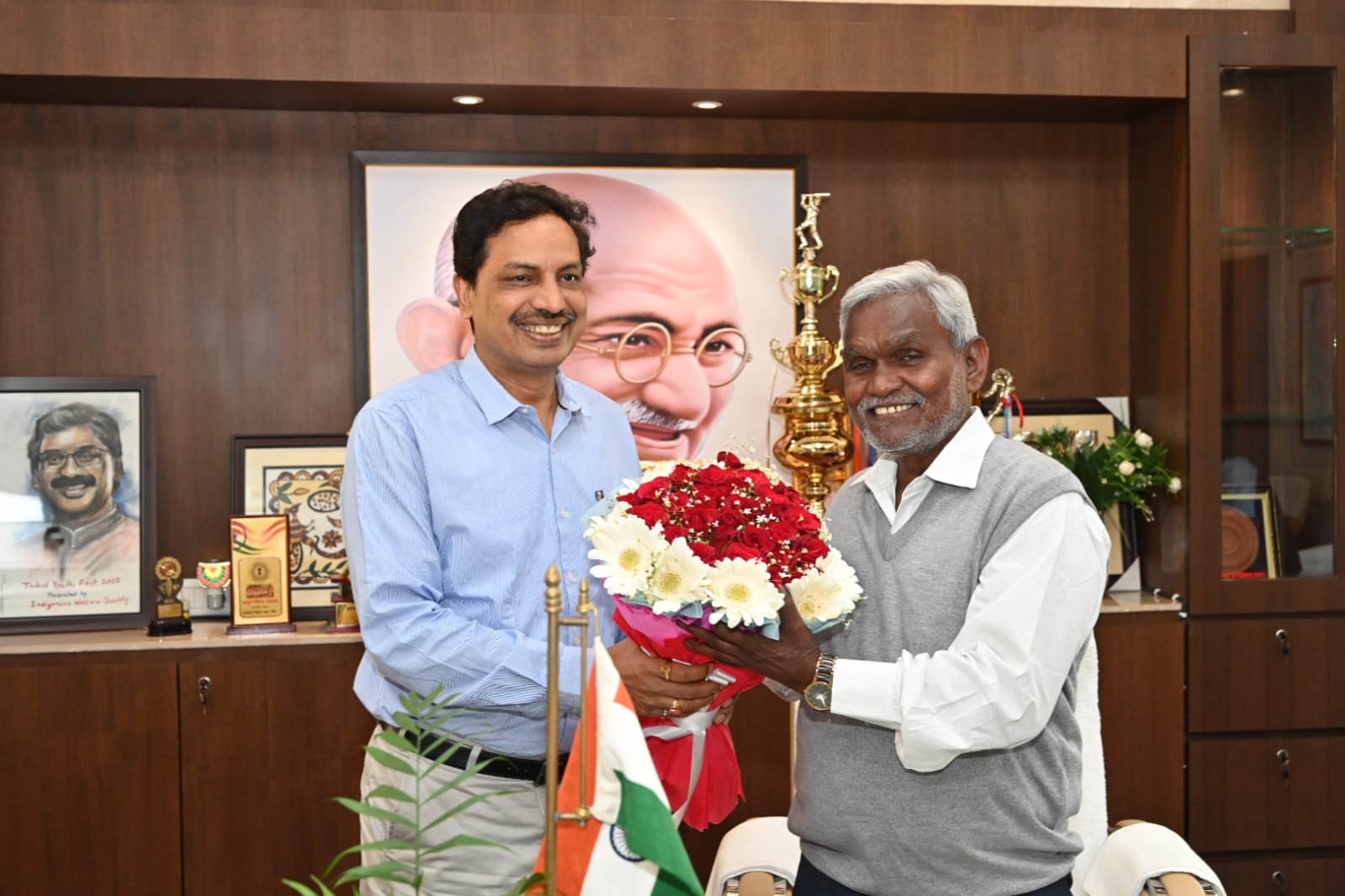 रांची : झारखंड विधानसभा के बजट सत्र के पहले दिन शुक्रवार को मुख्यमंत्री कक्ष में मुख्यमंत्री चम्पाई सोरेन का मुख्य सचिव एल खियांग्ते सहित अन्य ने अभिवादन किया। साथ ही मंत्रिमंडल समन्वय सचिवालय विभाग के प्रधान सचिव अजय कुमार सिंह और झारखंड विधानसभा के प्रभारी सचिव सैयद जावेद हैदर ने भी मुख्यमंत्री का अभिवादन किया।