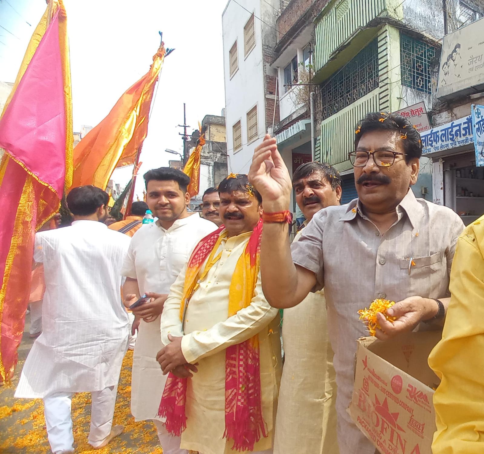 इस शोभायात्रा में गिरिडीह के निवर्तमान विधायक निर्भय कुमार शाहाबादी ने मकतपुर अवस्थित रानीलक्ष्मी बाई स्कूल के पास सभी श्रद्धालुओं पर पुष्प वर्षा की एवम शोभायात्रा में शामिल भक्तों के लिए शुद्ध पेयजल का वितरण किये।इस पुष्पवर्षा कार्यक्रम में निर्भय कुमार शाहाबादी के साथ दीपक स्वर्णकार,हबलु गुप्ता,मोती लाल उपाध्याय, नरेंद्र सिंह पचम्बा,बैभव शाहाबादी,अशोक सिंह,दीपक शर्मा,प्रकाश दास,ओमप्रकाश गुप्ता,गोबिंद तुरी,सुरेश गुप्ता,सुबोध सिंह,सहित दर्जनों कार्यकर्ता उपस्थित थे।