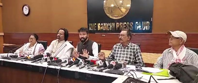 रांची  : राजधानी रांची के करम टोली स्थित प्रेस क्लब सभागार में कुरमी/कुड़मी को आदिवासी सूची में शामिल करने की माँग के विरोध में आदिवासी समाज के द्वारा एक संवाददाता सम्मेलन आयोजित की गई. इस संवाददाता सम्मेलन के माध्यम से संबंधित विषय पर तथ्यात्मक बात रखी गई.