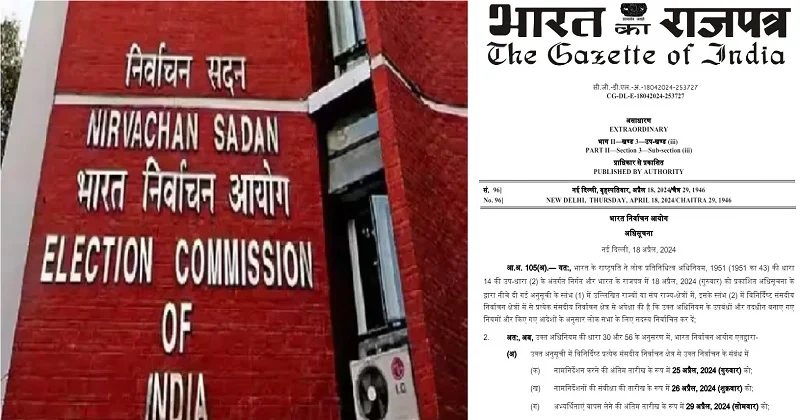 नई दिल्ली : देश में आम चुनाव के चौथे चरण के लिए गजट अधिसूचना जारी कर दी गई। चौथे चरण में 10 राज्यों आंध्र प्रदेश, बिहार, झारखंड, मध्य प्रदेश, महाराष्ट्र, ओडिशा, तेलंगाना, उत्तर प्रदेश, पश्चिम बंगाल और जम्मू-कश्मीर की 96 लोकसभा सीटों के लिए मतदान होगा। चौथे चरण का मतदान 13 मई को सुबह 7:00 बजे से शाम 6:00 बजे तक कराया जाएगा।