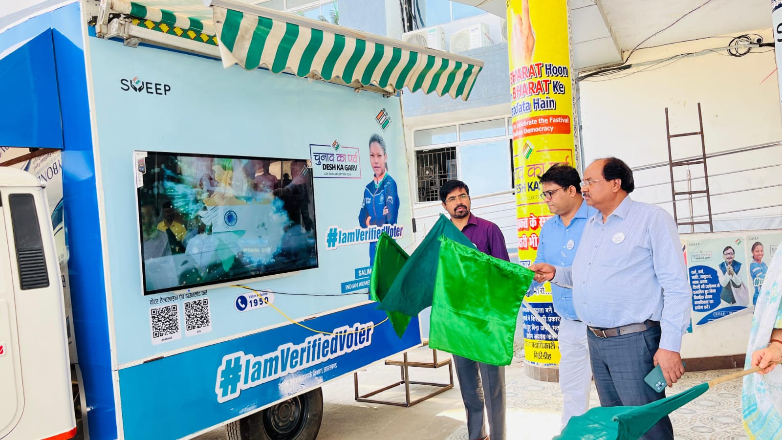 गिरिडीह : लोकसभा आम निर्वाचन व 31 गांडेय विधानसभा उप चुनाव 2024 के निमित्त गिरिडीह जिले में मतदान प्रतिशत बढ़ाने हेतु व्यापक जन जागरूकता अभियान जिला प्रशासन की ओर से चलाया जा रहा है। शनिवार को समाहरणालय परिसर से जिला निर्वाचन पदाधिकारी, नमन प्रियेश लकड़ा के द्वारा जिले के मतदाताओं को जागरूक करने के उद्देश्य से एलईडी जागरूकता वाहन को हरी झंडी दिखाकर रवाना किया गया।