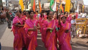गिरिडीह : धर्म का संदेश देने वाले भगवान महावीर की 2652वीं जयंती को लेकर रविवार को गिरिडीह में भव्य शोभा यात्रा निकाला गया. शहर के बड़ा चौक के जैन मंदिर से निकले इस भव्य शोभा यात्रा में काफी संख्या में जैन समाज की महिलाए, युवतियां और युवाओं के साथ बच्चे शामिल हुए. भगवान महावीर की जयंती को लेकर निकले भव्य शोभा यात्रा में भक्तों की ओर से जयकारे भी लगाए जा रहे थे.