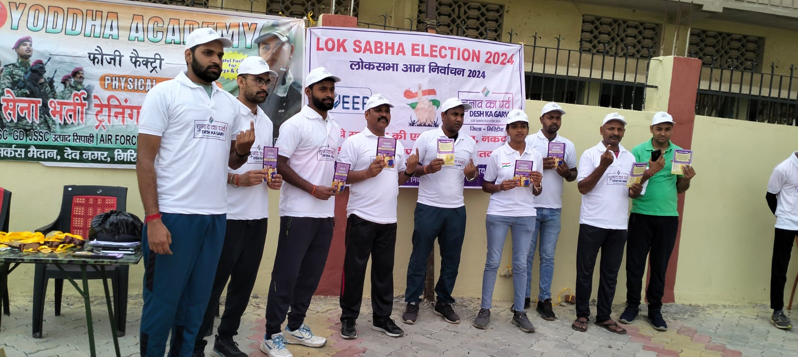गिरिडीह : मतदाता जागरूकता कार्यक्रम के तहत् मंगलवार को गिरिडीह नगर निगम के द्वारा कार्यक्रम किया गया। कार्यक्रम के तहत शहर के सर्कस मैदान में योद्धा एकाडेमी द्वारा आर्मी की तैयारी कर रहे युवक-युवतियों के बीच लोकतंत्र के महत्व को बताया गया। इस दौरान उपस्थित युवक-युवतियों के बीच टी-शर्ट एवं टोपी का वितरण किया गया। मौके पर उपस्थित अशोक कुमार हांसदा, सहायक नगर आयुक्त ने उपस्थित युवक-युवतियों को मतदान हेतु शपथ दिलाया। इस दौरान उन्होंने कहा कि हम सभी को लोकतंत्र के इस महापर्व में बढ़-चढ़ कर हिस्सा लेना है। कहा कि हम सभी को अपने मताधिकार का प्रयोग कर राष्ट्र के निर्माण व विकास में अपनी सहभागिता सुनिश्चित करनी है। आनंद राज] नगर प्रबंधक ने कहा कि मतदान की प्रतिशतता बढ़ाने के लिए हमें स्वयं और अन्य को भी जागरूक करना है। कहा कि मजबुत लोकतंत्र ही मजबुत राष्ट्र का निर्माण कर सकता है इसलिए हम सभी को मतदान की तिथि को मत का प्रयोग अवश्य करना है। श्री राज ने सभी युवक-युवतियों से जिला प्रशासन द्वारा आगामी गुरूवार को आयोजित रन फॉर वोट कार्यक्रम में अवश्य भाग लेने के लिए अपील किया। ऐसे मतदाताओं को एंड्रायट फोन के प्ले स्टोर से वोटर हेल्पलाइन एप्प डाउनलोड कर मतदान संबंधी जानकारी प्राप्त करने की बात कही गयी। इस दौरान पहली बार मतदान कर रहे युवक-युवतियों के बीच मतदान करने को लेकर काफी उत्सुकता देखी गयी। मौके पर योद्धा अकादमी के अभिषेक मिश्रा, अभिजीत मिश्र, सीआईएसएफ में चयनित बबली कुमारी, लक्ष्मी, खुशबु, सचिन, प्रदीप, राहुल के अलावा निगम के गौड़ी शंकर यादव, सुशील सोनु, निशांत वर्मा, शिवम राय, अमित कुमार आदि मौजूद थे।