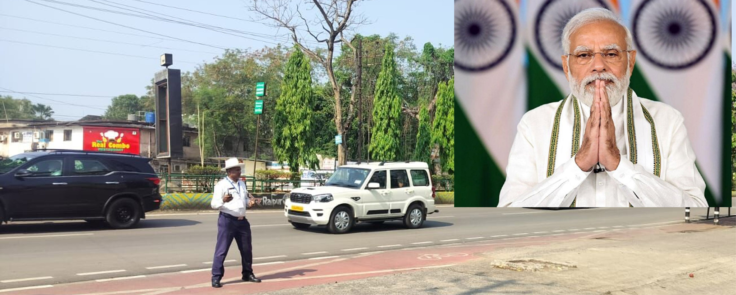 प्रधानमंत्री मोदी कड़ी सुरक्षा के बीच अंबिकापुर रवाना