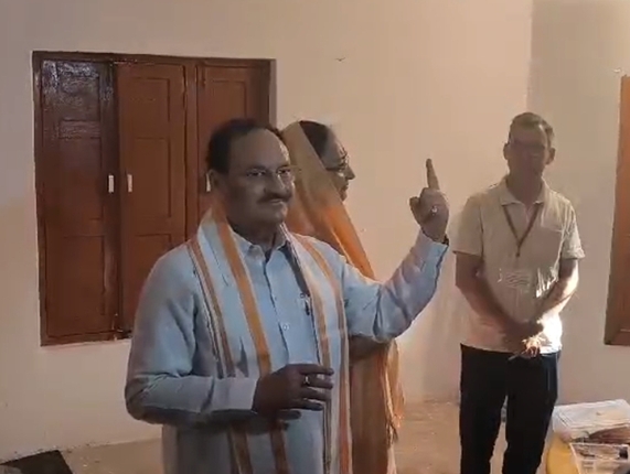 शिमला : भारतीय जनता पार्टी (भाजपा) के राष्ट्रीय अध्यक्ष जेपी नड्डा ने बिलासपुर जिला स्थित अपने पैतृक गांव विजयपुर स्थित मतदान केंद्र में अपने मताधिकार का प्रयोग किया। जेपी नड्डा पत्नी मल्लिका नड्डा के साथ सुबह 7 बजे मतदान केंद्र पहुंचे और सबसे पहले मतदान किया।
