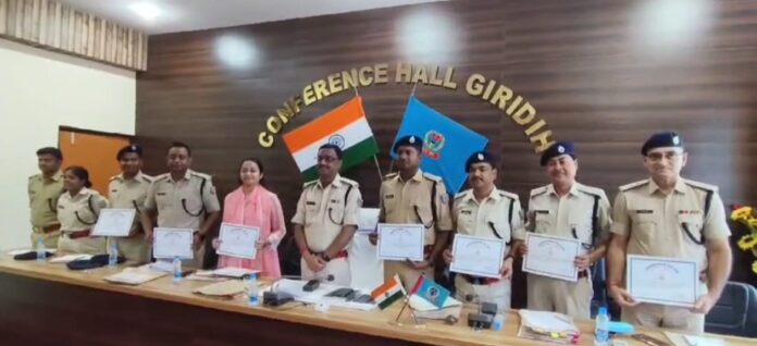 कार्यक्रम में गिरिडीह पुलिस कप्तान दीपक कुमार शर्मा ने एसडीपीओ सदर विनोद रवानी, खोरिमहुआ एसडीपीओ नीरज सिंह, सरिया एसडीपीओ धनंजय कुमार राम, हेडकाउटर DSP 2 कौसर अली, हेडकाउटर DSP 1 अंकिता राय, सार्जेंट मैजर राजेश रंजन, साईबर डीएसपी आबिद खान को प्रशस्ति पत्र देकर समानित किया.