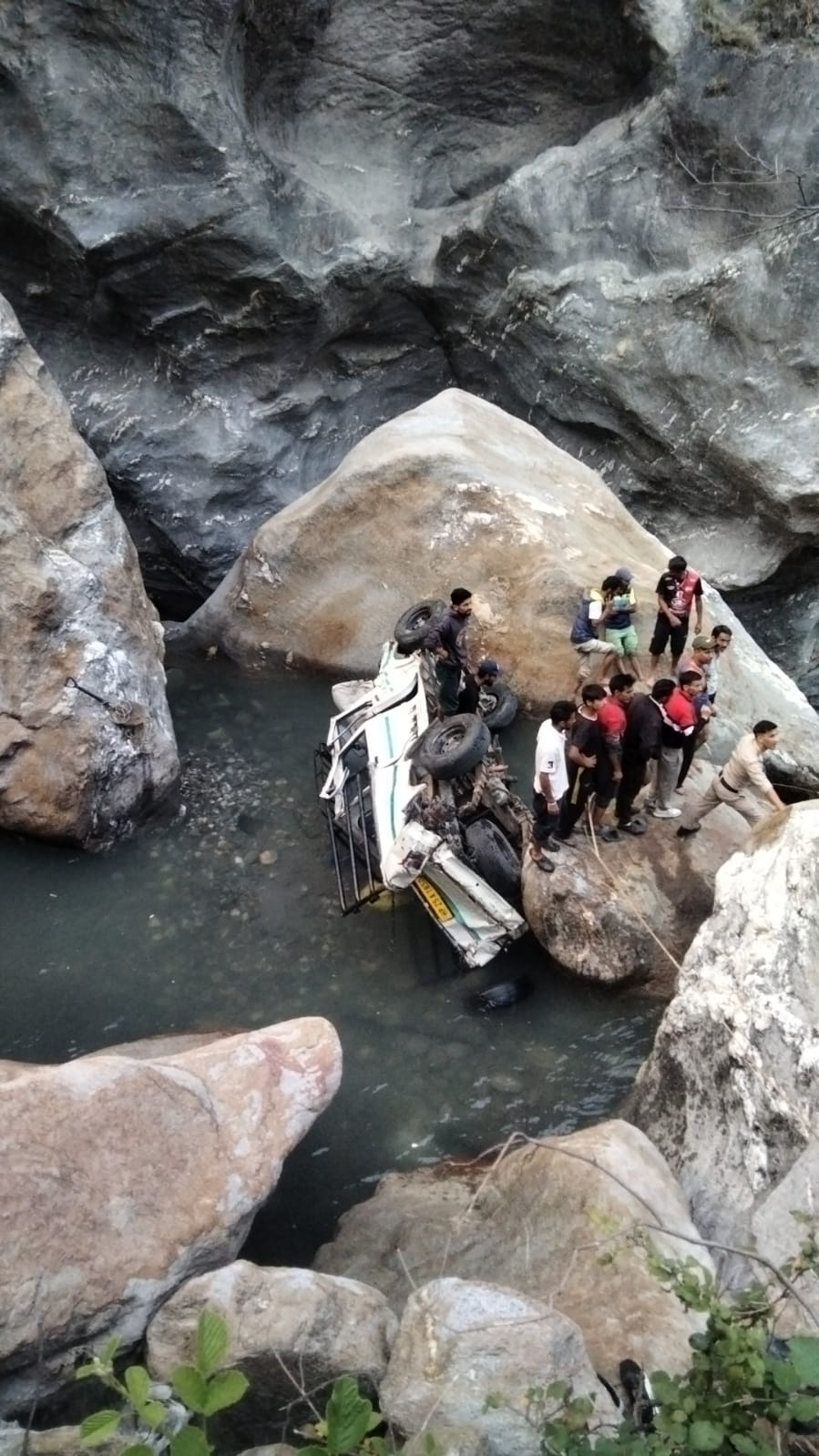 शिमला : बोलेरो कैम्पर बैक होकर खड्ड में गिरी, पति की मौत, पत्नी समेत दो घायल