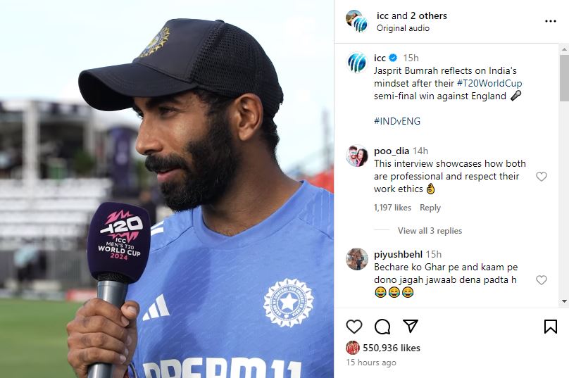 बुमराह ने कहा, “रोहित शर्मा बिल्कुल शानदार रहे हैं। यहां तक कि पिछले विश्व कप में भी, आप जानते हैं कि वह सक्रिय रहे हैं, वह अपने खिलाड़ियों को काफी आजादी देते हैं, वह खिलाड़ियों को खुद को अभिव्यक्त करने देते हैं। जब उन्हें सही समय लगता है, तो वह मैच के दौरान अपना अनुभव साझा करते हैं। तो हां, यह वास्तव में बहुत अच्छा लगता है और मैं उनके नेतृत्व में खेलकर बहुत खुश हूं और समूह का आत्मविश्वास भी बहुत ऊंचा है।”