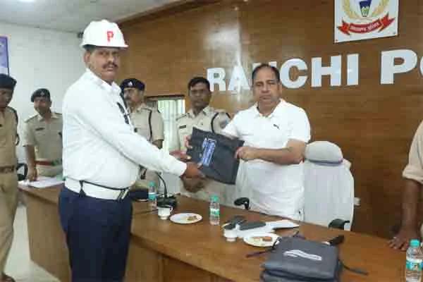 रांची : कांके रोड स्थित पुलिस लाइन में रविवार को एक कार्यक्रम का आयोजन किया गया। इस कार्यक्रम में एसएसपी चंदन सिन्हा ने ट्रैफिक व्यवस्था को बेहतर बनाने के लिए ट्रैफिक पुलिस कर्मियों को कई दिशा-निर्देश दिये। साथ ही एसएसपी ने ट्रैफिक पुलिस के जवानों के बीच रेनकोट का वितरण किया, ताकि बरसात में बिना भींगे सभी ड्यूटी कर सके।