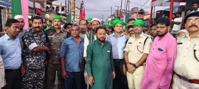 फ्लैग मार्च बड़ा चौक मुस्लिम बाजार मौलाना अब्दुल चौक कालीबाड़ी चौक जेपी चौक अंबेडकर चौक नेताजी चौक होते हुए भंडारीडीह पहुंची। इस मौके पर एसपी और अन्य अधिकारियों ने लोगों से शांतिपूर्ण माहौल में मोहर्रम पर्व मनाने की अपील की। इस मौके पर भंडारीडीह में अंजुमन कमेटी की ओर से एसपी समय सभी अधिकारियों का स्वागत पगड़ी बांधकर किया गया। इस मौके पर एसपी दीपक कुमार शर्मा ने सभी जिले वासियों को मोहर्रम की शुभकामनाएं देते हुए यह पर्व अमन चैन और शांति के साथ मनाने की अपील की। कहा की जिले में मुहर्रम त्यौहार को लेकर सुरक्षा व्यवस्था की पुख्ता इंतजाम किए गए सभी थाना और अनुमंडल क्षेत्र में स्थानीय लोगों के साथ बैठक की गई है। छोटी मोटी घटनाओं को निपटा लिया गया है। इन्होंने कहा कि अफवाहों पर ध्यान ना दें और कहीं भी कुछ परेशानी हो तो पुलिस को सूचना दें। पुलिस आपकी सेवा में सदैव तत्पर है।