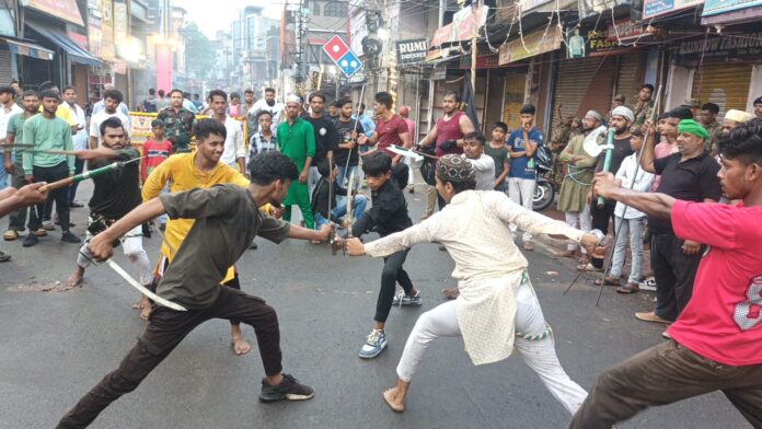 कई कमिटी के युवा खिलाड़ी मौके पर तलवार के साथ पारंपारिक अस्त्र शस्त्र के साथ रोमांचक खेल दिखाते दिखे. जबकि लाठियों के द्वारा भी अपने कला का प्रदर्शन किया. कमोबेश, हर इलाका डंकों के आवाज से गूंजता रहा. और खिलाड़ी अपने खेल का प्रदर्शन करते रहे. अहले सुबह से ही चौक में खिलाड़ियों का जुटना शुरू हो चुका था. हुसैनिया निशान लिए युवा खिलाड़ी उसे लहराते नजर आए. और धार्मिक नारे लगाते दिखे. तो दूसरी तरफ शहर के मौलाना आजाद चौक में कई कमेटियों के द्वारा बेहतर खेल का प्रदर्शन किया गया गिरिडीह मोहर्रम एकता मंच के सदस्यों ने करतब दिखा रहे खिलाड़ियों का हौसला अफजाई किया मोहम्मद वारिस और कमेटी के सदस्यों के द्वारा खिलाड़ियों को पगड़ी पहनाकर सम्मानित किया गया.