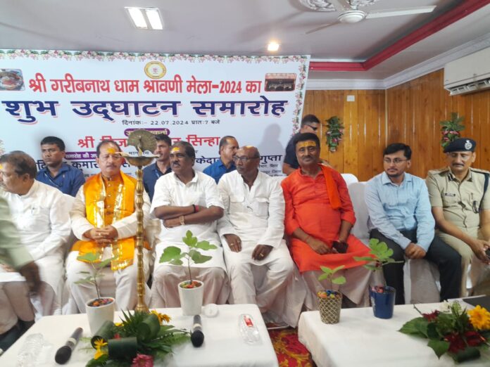पटना : श्रावण मास की शुरुआत हो गई है। ऐसे में आज पहली सोमवारी को उत्तर बिहार का देवघर कहे जाने वाला बाबा गरीब स्थान मंदिर में जलाभिषेक करने के लिए सारण जिले के पहलेजा घाट से जल लेकर करीब एक लाख कांवड़िये मुजफ्फरपुर पहुंचे हैं। सोमवार सुबह मुजफ्फरपुर में बाबा गरीब नाथ धाम में श्रावणी मेला का विधिवत उद्घाटन बिहार के उप मुख्यमंत्री एवं मुजफ्फरपुर के प्रभारी मंत्री विजय कुमार सिन्हा ने किया। उनके साथ मंत्री केदार गुप्ता और अन्य नेता भी शामिल हुए। जिला प्रशासन ने श्रावणी मेला की पूरी तैयारी की है।