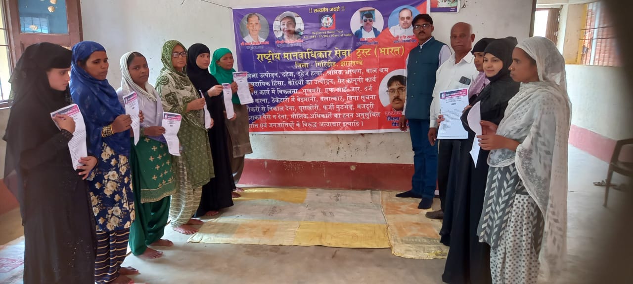 गिरिडीह : गांवा प्रखंड के पंचायत मालडा आंगनबाड़ी केंद्र में राष्ट्रीय मानव अधिकार सेवा ट्रस्ट की  बैठक महिला प्रखंड अध्यक्ष जेबा नाज की अध्यक्षता में हुई वहीं संचालन महिला प्रखंड सचिव अफसाना खातून ने किया इस कार्यक्रम मुख्य अतिथि के तौर पर जिला अध्यक्ष इरफान अंसारी मौजूद थे इस बाबत जिला अध्यक्ष ने कहा की महिलाएं और पुरुष जब तक जागरूक नहीं होगा तब तक अपना हक अधिकार नहीं ले सकेगा मानव जागरूक नहीं रहने के कारण हमारा हक अधिकार छीनने का काम शासन और प्रशासन कर रही हैं। इरफान अंसारी ने कहा कि प्रखंड स्तर से लेकर जिला स्तर के पदाधिकारी मानव का हक अधिकार छीनने का काम कर रही है मैं उपायुक्त महोदय से मांग करता हूं की गिरिडीह जिला स्तर के पदाधिकारी और प्रखंड स्तर के पदाधिकारी जनता का हक अधिकार छीनने का काम कर रही है इसलिए  जिला के जनता को हक अधिकार दिलाने का काम करें। महिला प्रखंड अध्यक्ष जेबा नाज ने कहा कि पूरे गांवा प्रखंड में महिलाओं को जागरूक किया जा रहा है और गांवा प्रखंड के एक-एक महिलाओं को हक अधिकार दिलाने का काम करेंगे। और बहुत जल्द सभी पंचायत में पदाधिकारी नियुक्त किया जाएगा इनके अलावा और भी पदाधिकारी अपना अपना विचार को रखा वहीं बैठक में तमन्ना परवीन, कमरुन निशा, शहनाज बेगम ,सहीना खातून, मेहरून खातून, रेहाना खातून, युनुस अंसारी ,मोहम्मद फिरोज, सुरेश कुमार रवानी आदि मौजूद थे।