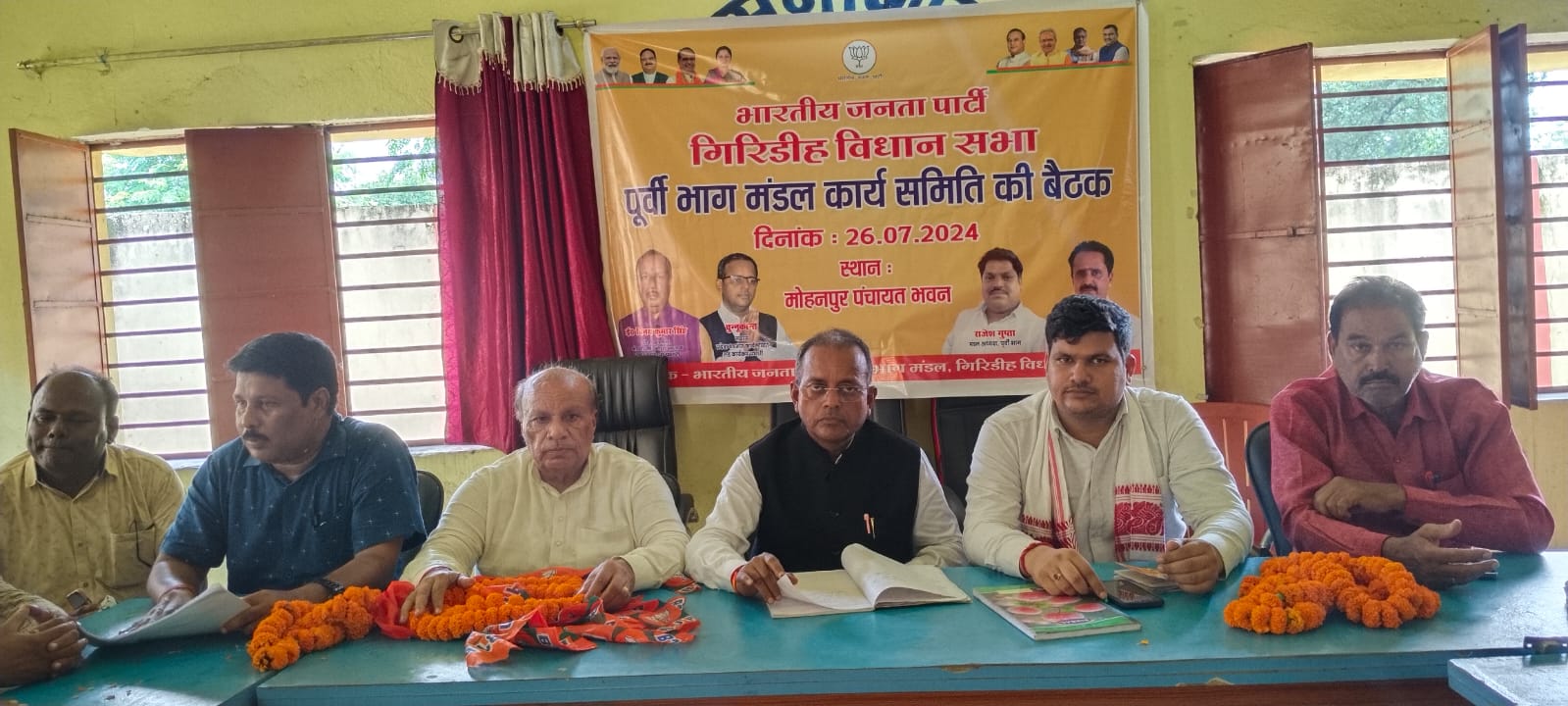 गिरिडीह विधानसभा पूर्वी भाग मंडल अंतर्गत प्रदेश भाजपा के निर्देशानुसार मोहनपुर पंचायत भवन में मंडल के उपाध्यक्ष वीरेंद्र वर्मा की अध्यक्षता में मंडल कार्य समिति की बैठक संपन्न हुई, उक्त कामकाजी बैठक में कार्यक्रम के प्रभारी सेवानिवृत्ति इंजीनियर विनय कुमार सिंह प्रदेश प्रवक्ता ओबीसी मोर्चा भाजपा एवं प्रभारी चुन्नू कान्त प्रदेश कार्य समिति सदस्य के द्वारा विधिवत सभी 12 पंचायत की समीक्षा के साथ सभी पंचायत में 28 जुलाई को सभी बूथों पर यशस्वी माननीय प्रधानमंत्री जी के मन की बात सुनने एवं बूथ कमेटी की बैठक की सफलता हेतु सर्वसम्मति से मंडल स्तर पर तीन एवं पंचायत स्तर पर संयोजक एवं सहसंयोजक चयनित किया गया ,उक्त अवसर पर इंजीनियर विनय कुमार सिंह एव अधिवक्ता संघ के सचिव चुन्नू कान्त द्वारा बताया गया की निर्धारित तिथि को मन की बात सुनकर वहीं पर बूथ कमेटी का समीक्षात्मक बैठक किया जाएगा,जिसमें बूथ कमेटी के सशक्तिकरण ,पन्ना प्रमुख सहित अन्य संगठन के विषयों पर विचारोपरांत सभी लोगों को अपने-अपने दायित्वों का निर्वहन करने हेतु जिम्मेवारी दी जाएगी, साथ में बूथ स्तर के सभी कार्यकर्ता यशस्वी माननीय प्रधानमंत्री नरेंद्र भाई मोदी जी के कुशल नेतृत्व में केंद्र सरकार द्वारा किए जा रहे विकास कार्य एवं जनकल्याणकारी योजनाओं से गरीबों को प्राप्त हो रहे लाभ को घर-घर तक पहुंचाने का कार्य करेंगे एवं हेमंत सरकार मे व्याप्त भ्रष्टाचार सहित सभी विफलताओं से अवगत कराएंगे, कार्यक्रम में मंडल के पालक सुनीत सिंह ,पप्पू ,भाजपा युवा जिला अध्यक्ष रनजीत सिंह ,पूर्व मंडल अध्यक्ष दीपक पंडित ,अजीत गुप्ता , मंडल उपाध्यक्ष राज किशोर सहित अन्य कार्यकर्ताओं द्वारा भी कार्य की सफलता से संबंधित अपने सुझाव दिए गए, कार्यक्रम का संचालन मंडल महामंत्री प्रदीप कुमार राय एवं धन्यवाद ज्ञापन भाजपा किसान मोर्चा के जिला उपाध्यक्ष अनूप सिंन्हा द्वारा किया गया, इससे पूर्व आज के ऐतिहासिक दिन कारगिल विजय दिवस पर प्रकाश डालते हुए कारगिल युद्ध में शाहिद 537 वीर जवानों के सम्मान में 2 मिनट का मौन रखा गया, कार्यक्रम में अजीत शर्मा बसंत राय ,वीरेंद्र राय ,दिलीप मरीक ,विनोद राणा, गौतम तिवारी, परशुराम सिंह सहित सैकड़ो की संख्या में मंडल कमेटी के पदाधिकारी कार्य समिति सदस्य, बूथ अध्यक्ष ,शक्ति केंद्र के संयोजक शामिल थे |