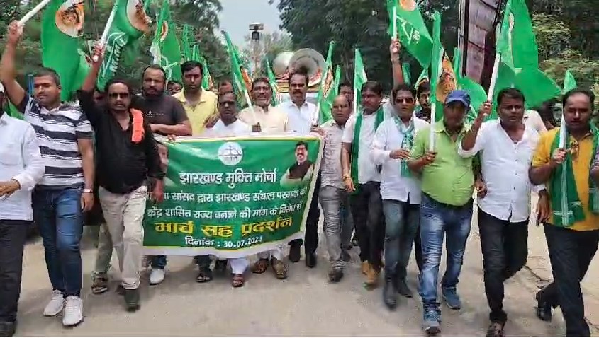 बोकारो भाजपा के झारखण्ड विरोधी मानसिकता के विरोध में बोकारो जिला मुख्यालय पर झारखंड मुक्ति मोर्चा ने प्रदर्शन किया। प्रदर्शन का नेतृत्व कर रहे झामुमो के जिला अध्यक्ष हीरालाल मांझी ने कहा कि आज झारखंड के विरोध में भाजपा नेताओं द्वारा बयान दिया जा रहा है, इसको लेकर हमलोग प्रदर्शन करते हुए राज्यपाल को ज्ञापन सौंपकर भाजपा को निलंबित करने की मांग कर रहे हैं। उन्होंने कहा कि यह प्रदेश आदिवासी बाहुल्य है, और आदिवासियों के खिलाफ आ रहे बयान पूरे देश के लिए शर्मनाक है। उन्होंने कहा कि दिशोम गुरु शिबू सोरेन के आंदोलन के बाद इस राज्य को राज्य का दर्जा मिला है, लेकिन अब भाजपा नेताओं ने इस राज्य को केंद्र शासित राज्यों में शामिल करने का बयान दे रहे हैं तो झामुमो इस राज्य को भाजपा के हाथों नहीं जाने देगी।हम आंदोलन करेंगे। उन्होंने कहा कि भाजपा की मनमानी नहीं चलने देंगें।