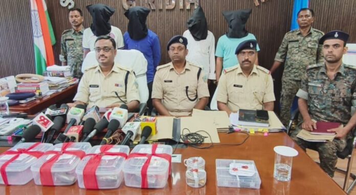 गिरीडीह : गिरीडीह पुलिस ने एक बड़ी घटना होने से पूर्व 4 अपराधियों को पकड़ लिया है. अपराधियों की गिरफ्तारी हरिहर धाम रोड से हुई है. गिरफ्तार अपराधियों में रंजीत कुमार साव, सुधीर कुमार यादव, एकर दास उर्फ आतिश दास और मो. आरिफ शामिल है. उक्त जानकारी गिरीडीह एसपी दीपक कुमार शर्मा ने पपरवाटांड स्थित पुलिस अधीक्षक कार्यालय में प्रेस वार्ता कर दी.