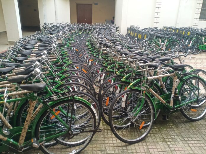 साइकिल का आवंटन कल्याण विभाग द्वारा आदर्श चुनाव आचार संहिता लगने से पूर्व मिला था। परंतु साइकिल की फिटिंग का कार्य नहीं होने के कारण वितरण समय पर नहीं हुआ। वैसे में आदर्श चुनाव आचार संहिता लागू हो जाने के कारण साइकिल का वितरण नहीं हो पाएगी। फिलहाल कारीगरों द्वारा 240 साइकिल की फिटिंग का कार्य किया गया है। जबकि शेष साइकिल की फिटिंग का कार्य जारी है।