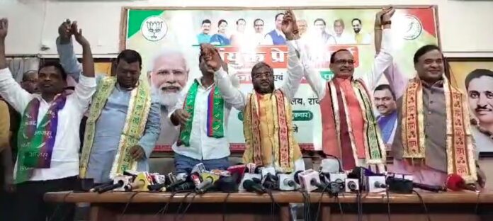 रांची : एनडीए में सीट शेयरिंग का फार्मूला आज स्पष्ट हो गया है। रांची में भारतीय जनता पार्टी और उसके सहयोगी आजसू पार्टी की ओर से संयुक्त प्रेस वार्ता में इस बात की घोषणा की गई। भाजपा प्रदेश कार्यालय में आयोजित संयुक्त प्रेस वार्ता में भाजपा के प्रदेश अध्यक्ष बाबूलाल मरांडी, बीजेपी के चुनाव प्रभारी और केंद्रीय मंत्री शिवराज सिंह चौहान, चुनाव सह प्रभारी और असम के मुख्यमंत्री हेमंत विश्व शर्मा, आजसू पार्टी के प्रमुख सुदेश कुमार महतो, सांसद चंद्र प्रकाश चौधरी और रामचंद्र सहिस मौजूद थे।