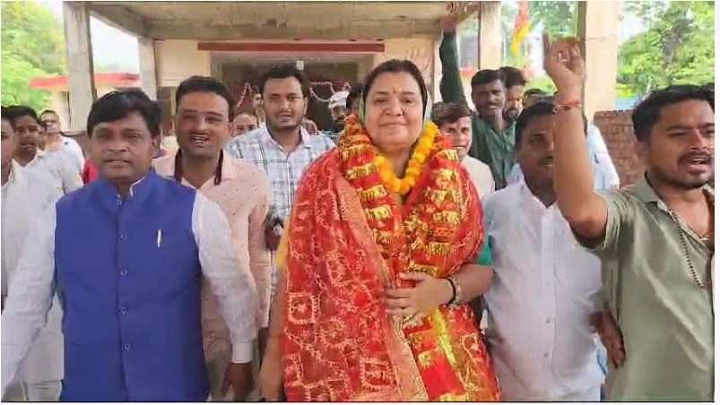 पूजा अर्चना के बाद नामांकन के लिए निकली श्वेता सिंह