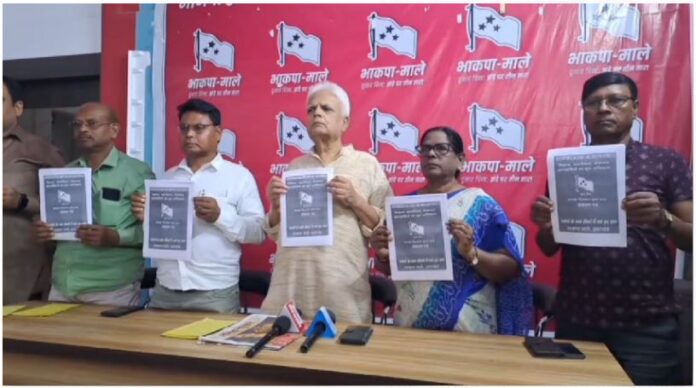 रांची: भारतीय कम्युनिस्ट पार्टी,भाकपा माले ने आज रांची में अपना घोषणा पत्र जारी किया। घोषणा पत्र जारी करने के साथ पार्टी के शुभेंदु सेन ने कहा कि इंडिया गठबंधन के तहत पार्टी कुल चार विधानसभा सीटों पर चुनाव लड़ रही है। निरसा,सिंदरी और बगोदर विधानसभा सीट पर पार्टी अपना प्रत्याशी स्वतंत्र रूप से खड़ा कर रही है। जबकि धनवार विधानसभा सीट पर पार्टी का झारखंड मुक्ति मोर्चा के साथ दोस्ताना संघर्ष होगा। शुभेंदु सेन ने कहा कि घोषणा पत्र में पार्टी में माना है कि किसी भी हालत में झारखंड में भाजपा की सरकार नहीं बनने देनी है।