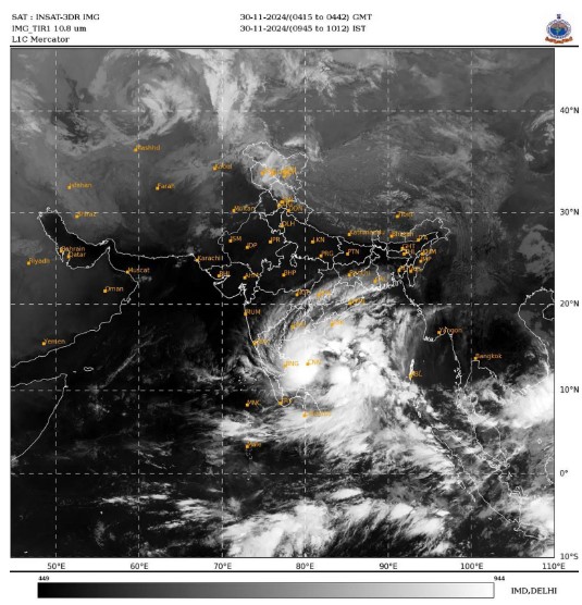 नई दिल्ली : बंगाल की खाड़ी के ऊपर उठा चक्रवाती तूफान फेंगल ने तमिलनाडु और पुडुचेरी में दस्तक दी। इसके कारण तेज हवा के साथ भारी बारिश का दौर जारी है। भारत मौसम विभाग (आईएमडी) के मुताबिक चक्रवाती तूफान फेंगल तमिलनाडु और पुडुचेरी के तटों को पार कर गया है।