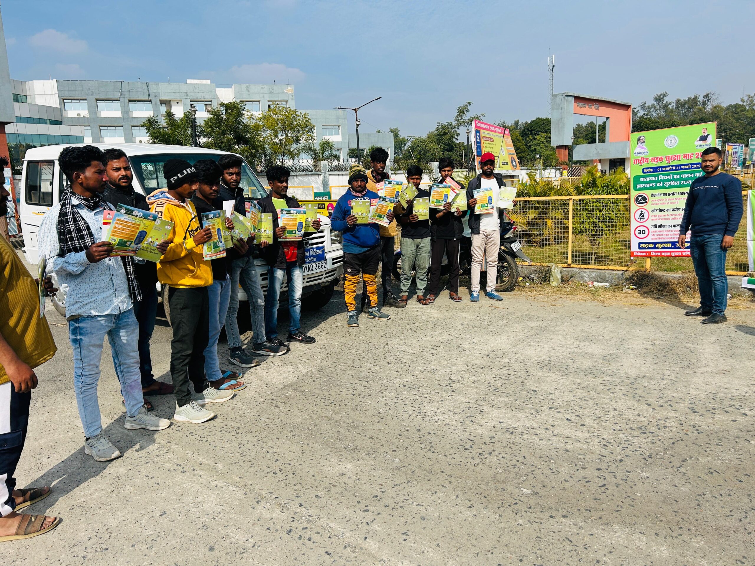 कार्यक्रम के दौरान एमवीआई इफरान अहमद, एमवीआई गौरी शंकर, सड़क सुरक्षा प्रबंधक मोहम्द वाज़िद हसन राकेश मंगलम, राजन कृति, रामानंद इस अभियान में उपस्थित रहे।