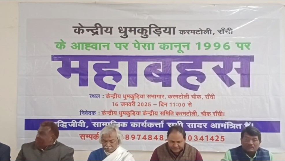 रांची के केंद्रीय धूमकुरिया करमटोली में पेसा कानून 1996 पर महाबहस का आयोजन किया गया। इस बहस का मुख्य उद्देश्य था गांवों को संविधान द्वारा दिए गए अधिकारों को लागू करवाना और ग्राम सभाओं को सशक्त बनाना।