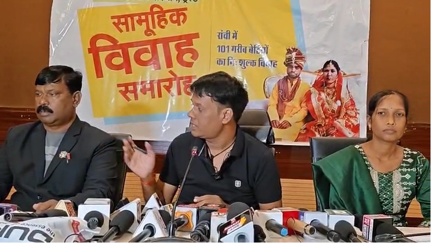 रांची : विकास ग्राम सेवा संस्थान ट्रस्ट के द्वारा राजधानी रांची में 101 गरीब बेटियों का निशुल्क सामूहिक विवाह समारोह आयोजित किया जा रहा है। यह आयोजन 27 सितंबर को दिगंबर जैन भवन, हरमू रोड, रांची में होगा। संस्था की ओर से आयोजित प्रेस कॉन्फ्रेंस में सचिव विकास भूषण, सदस्य महावीर खलखो, प्रियंका मुंडा और नीलम ने संयुक्त रूप से इसकी जानकारी दी।