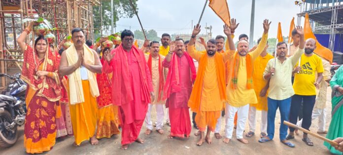 गिरिडीह शक्ति की आराधना मां दुर्गा की पूजा शारदीय नवरात्र का प्रारंभ आज कलश स्थापना से हुआ शुरू | कलश स्थापना के पहले दिन सार्वजनिक श्री मां दुर्गा पूजा समिति सिहोडीह आम बागान से प्रत्येक वर्ष की भांति इस वर्ष भी कलश यात्रा निकाला गया | महिलाएं और कन्याओं के द्वारा सर पर कलश लेकर दुर्गा मंडप आम बागान से निकलकर आदर्श नगर छठ घाट पहुंचे और वहां से जल उठाकर मंडप में स्थापित किया गया | इस मौके पर आचार्य राजेंद्र शास्त्री आचार्य नवीन शास्त्री अध्यक्ष अशोक राम उपाध्यक्ष शिवनंदन प्रसाद सचिव दीपक कुमार यादव उपसचिव विजय सिंह कोसा अध्यक्ष उमेश यादव, संरक्षक दशरथ प्रसाद, मुन्ना पाठक, अनिल मिश्रा, सहित सदस्य गन मौजूद थे।