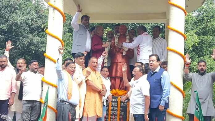 भारतीय जनसंघ के संस्थापक पंडित दीनदयाल उपाध्याय की जयंती के अवसर पर आज रांची में कार्यक्रम आयोजित की गई | इस कार्यक्रम के तहत पंडित दीनदयाल उपाध्याय की प्रतिमा पर भारतीय जनता पार्टी प्रदेश अध्यक्ष बाबूलाल मरांडी,रांची विधायक सी पी सिंह सहित भाजपा के प्रदेश स्तरीय कई पदाधिकारी की उपस्थिति रही उपस्थित लोगों ने प्रतिमा पर माल्यार्पण और श्रद्धा सुमन अर्पित की और उनके कार्यों को याद किया |