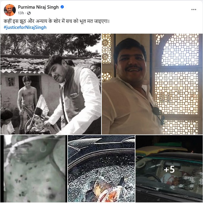 इधर, सोशल मीडिया पर नीरज सिंह की पत्नी पूर्णिमा सिंह का एक भावुक पोस्ट वायरल हो गया। उन्होंने Facebook पर पोस्ट कर लिखा — “कहीं इस झूठ और अन्याय के शोर में सच को भूल मत जाइएगा।”