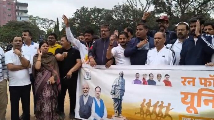 रांची- भारत के लौह पुरुष और भारत रत्न सरदार वल्लभभाई पटेल की 150वीं जयंती के अवसर पर भारतीय जनता पार्टी रांची महानगर की ओर से बुधवार को ‘रन फॉर यूनिटी’ (Run for Unity) का आयोजन किया गया। राजधानी रांची के ओटीसी ग्राउंड से शुरू हुई इस दौड़ में सैकड़ों युवाओं, भाजपा कार्यकर्ताओं और समाजसेवियों ने भाग लिया।