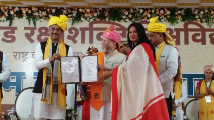 रांची- झारखंड रक्षा शक्ति विश्वविद्यालय का पहला दीक्षांत समारोह शुक्रवार को रांची के मोराबादी दीक्षांत मंडप में आयोजित किया गया। समारोह में विश्वविद्यालय के कुलाधिपति एवं राज्यपाल संतोष कुमार गंगवार मुख्य अतिथि के रूप में उपस्थित हुए। उनके साथ केंद्रीय रक्षा राज्य मंत्री संजय सेठ और मंत्री सुदिब्य कुमार सोनू भी मौजूद थे।