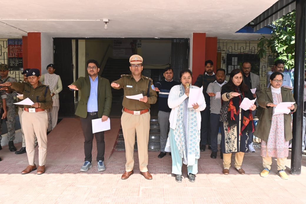 कार्यक्रम की शुरुआत भारतीय संविधान की प्रस्तावना के पाठ से हुई। DC कीर्तिश्री और SP सुमित कुमार अग्रवाल ने सबसे पहले प्रस्तावना पढ़ी, जिसके बाद उपस्थित सभी अधिकारियों और कर्मियों ने सामूहिक रूप से प्रस्तावना का पाठ दोहराया। इस दौरान परिसर में संविधान के प्रति सम्मान और गर्व का माहौल नजर आया।