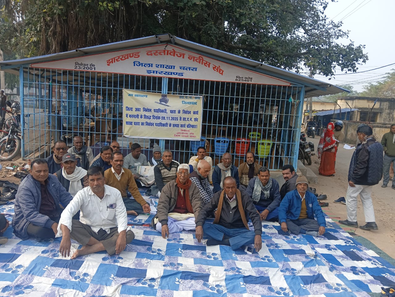 दस्तावेज नवीस संघ की अनिश्चितकालीन हड़ताल 20वें दिन भी जारी, चतरा में निबंधन कार्य पूरी तरह ठप